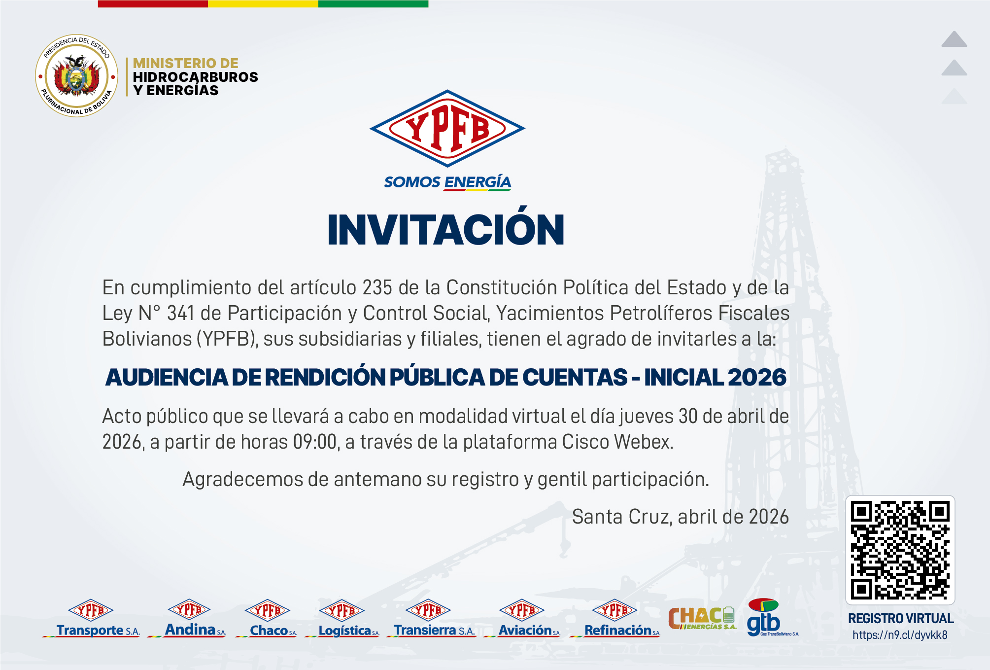 Bolivianos (YPFB), sus subsidiarias y filiales, tienen el agrado de invitarles…