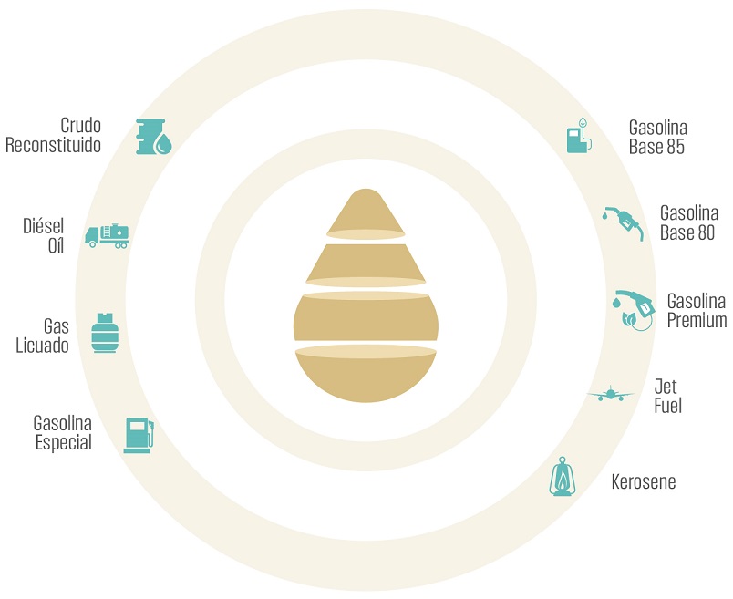 Esta refinería produce crudo reconstituido, diésel oíl, gas licuado de petróleo, gasolina especial, gasolina base 85, gasolina base 81, gasolina premium, jet fuel y kerosene.