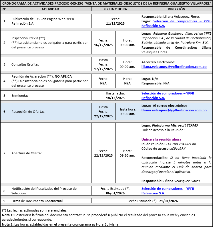 005-25G “VENTA DE MATERIALES OBSOLETOS DE LA REFINERÍA GUALBERTO VILLARROEL”
