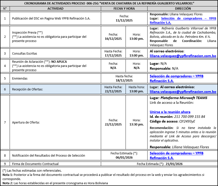 006-25G “VENTA DE CHATARRA DE LA REFINERÍA GUALBERTO VILLARROEL”